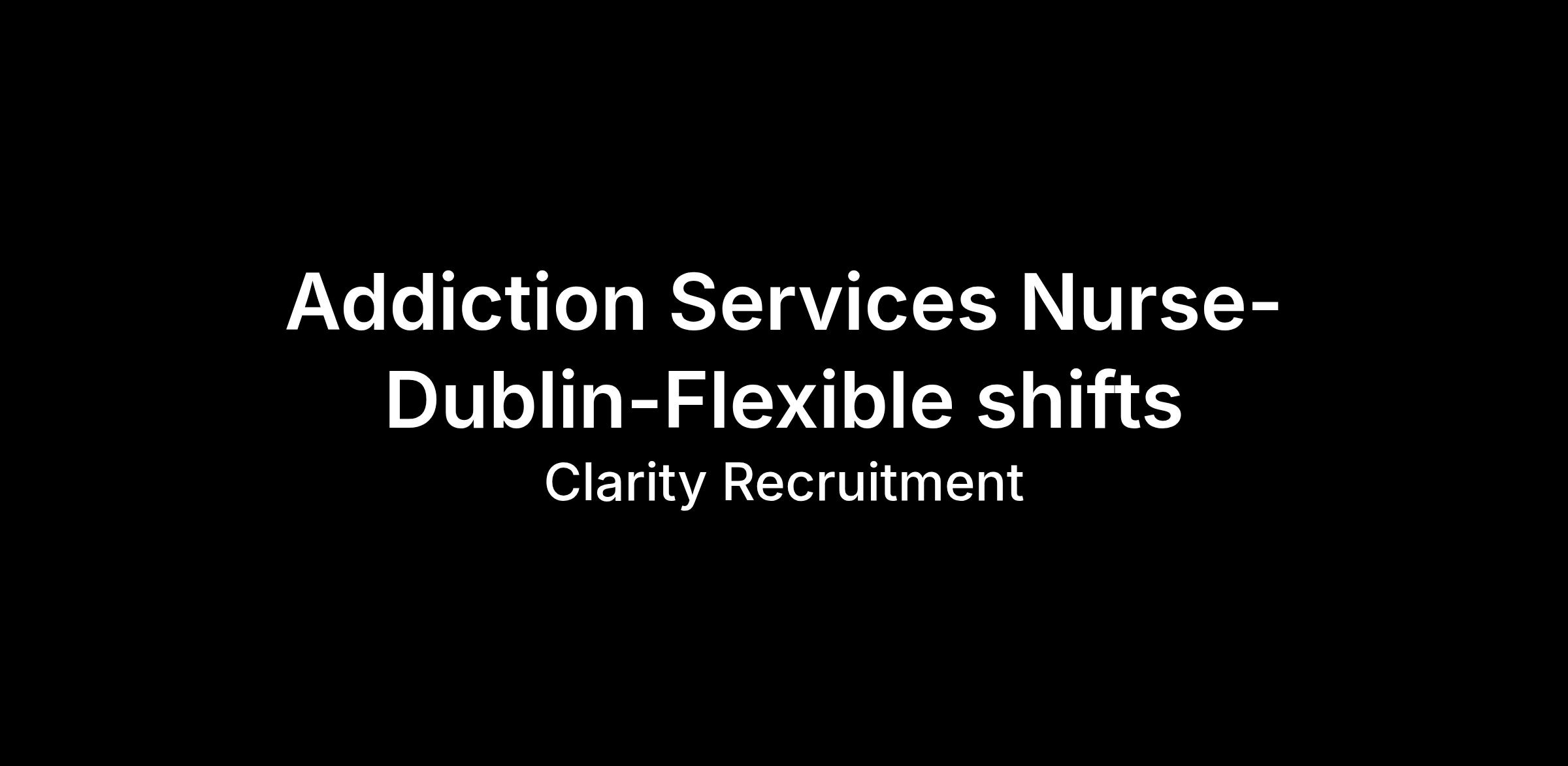 Clarity Locums are currently seeking a Registered General Nurse or Registered Psychiatric Nurse for an agency role with an addictions services team in Dublin