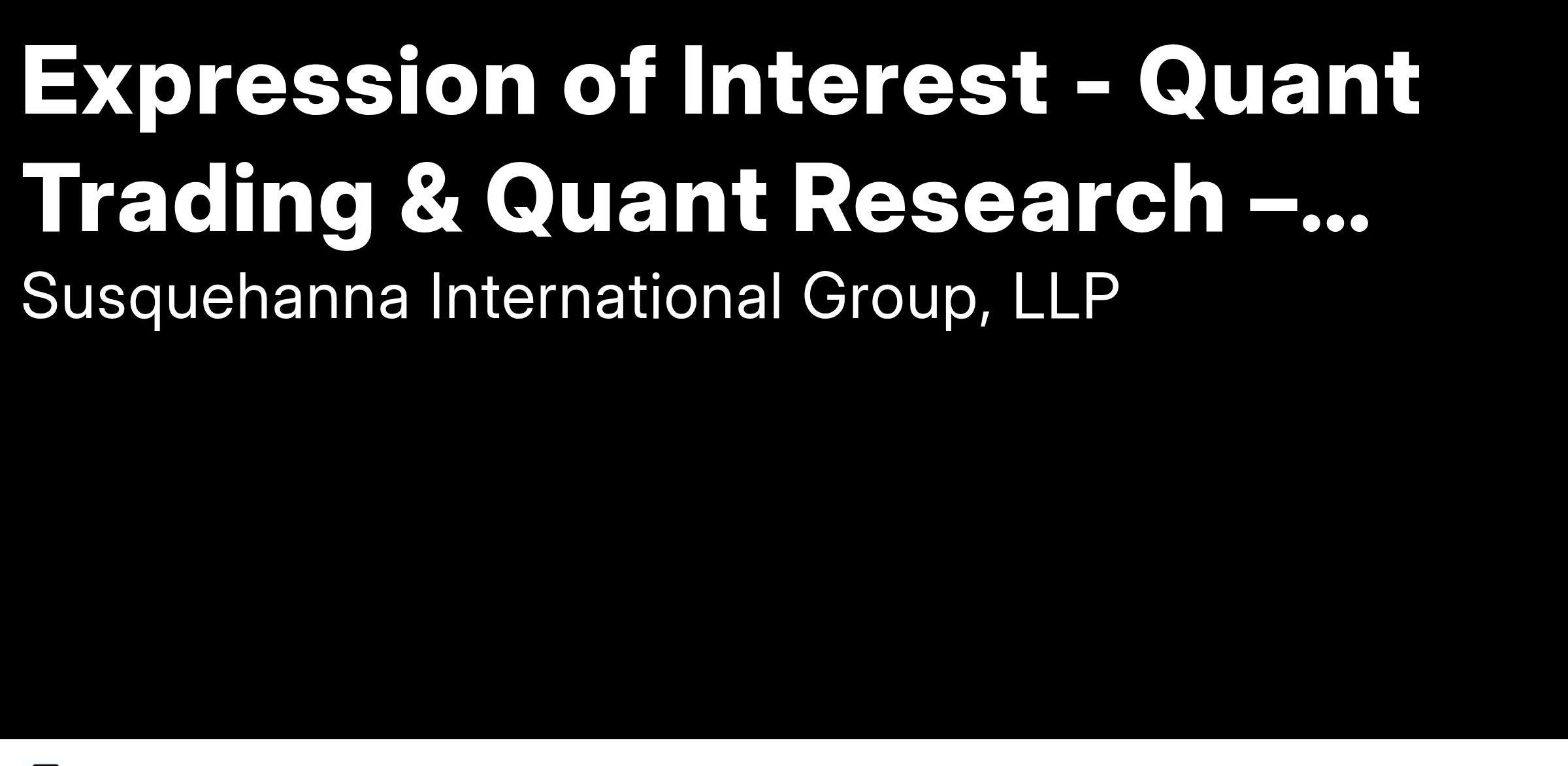 Susquehanna is an equal opportunity employer, and we are committed to diversity and inclusion throughout our recruitment process. If you need assistance and/or a reasonable accommodation due to a disability during the application or recruitment process, please contact us.