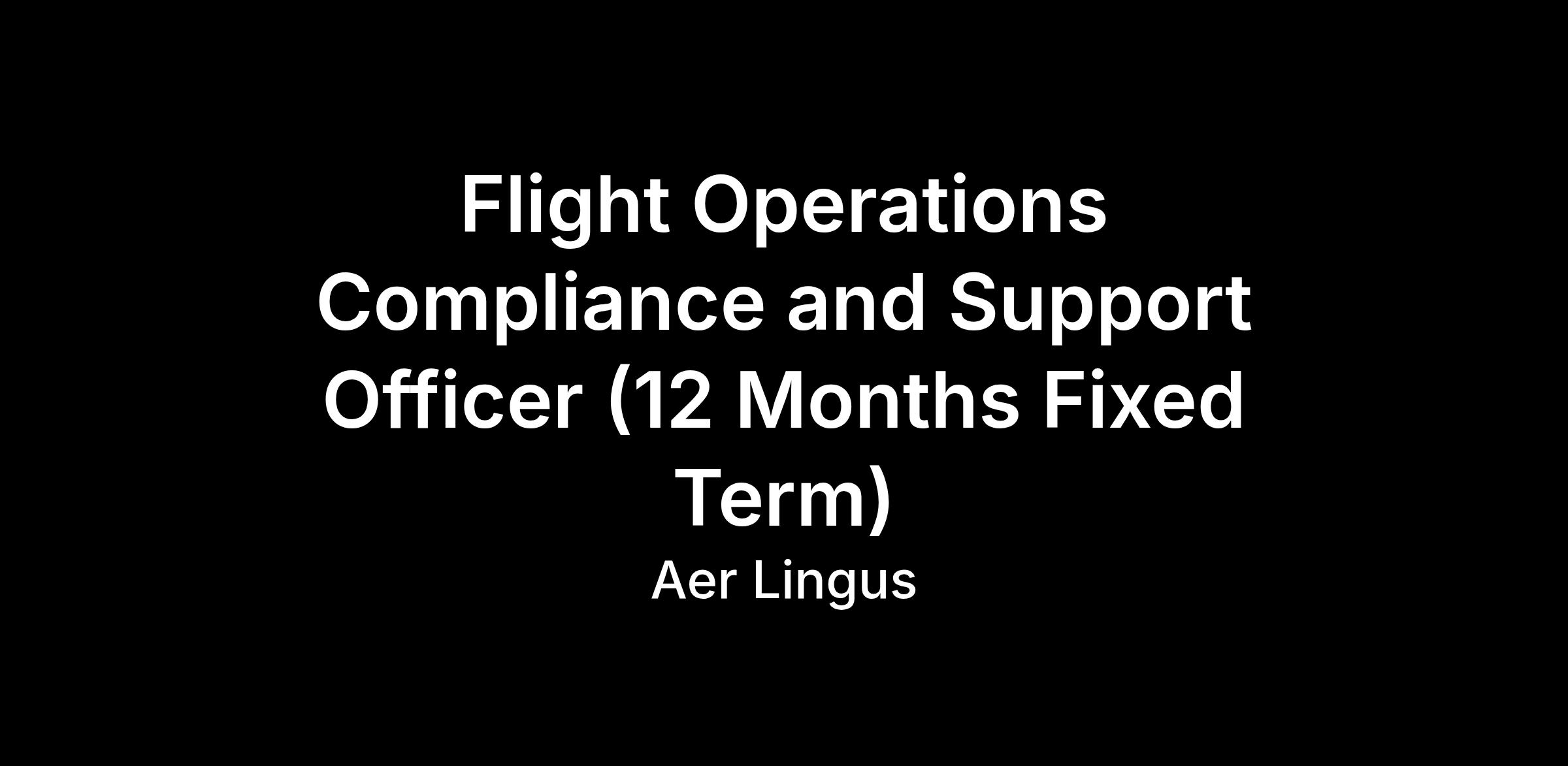 Flight Operations Compliance and Support Officer (12 Months Fixed Term)