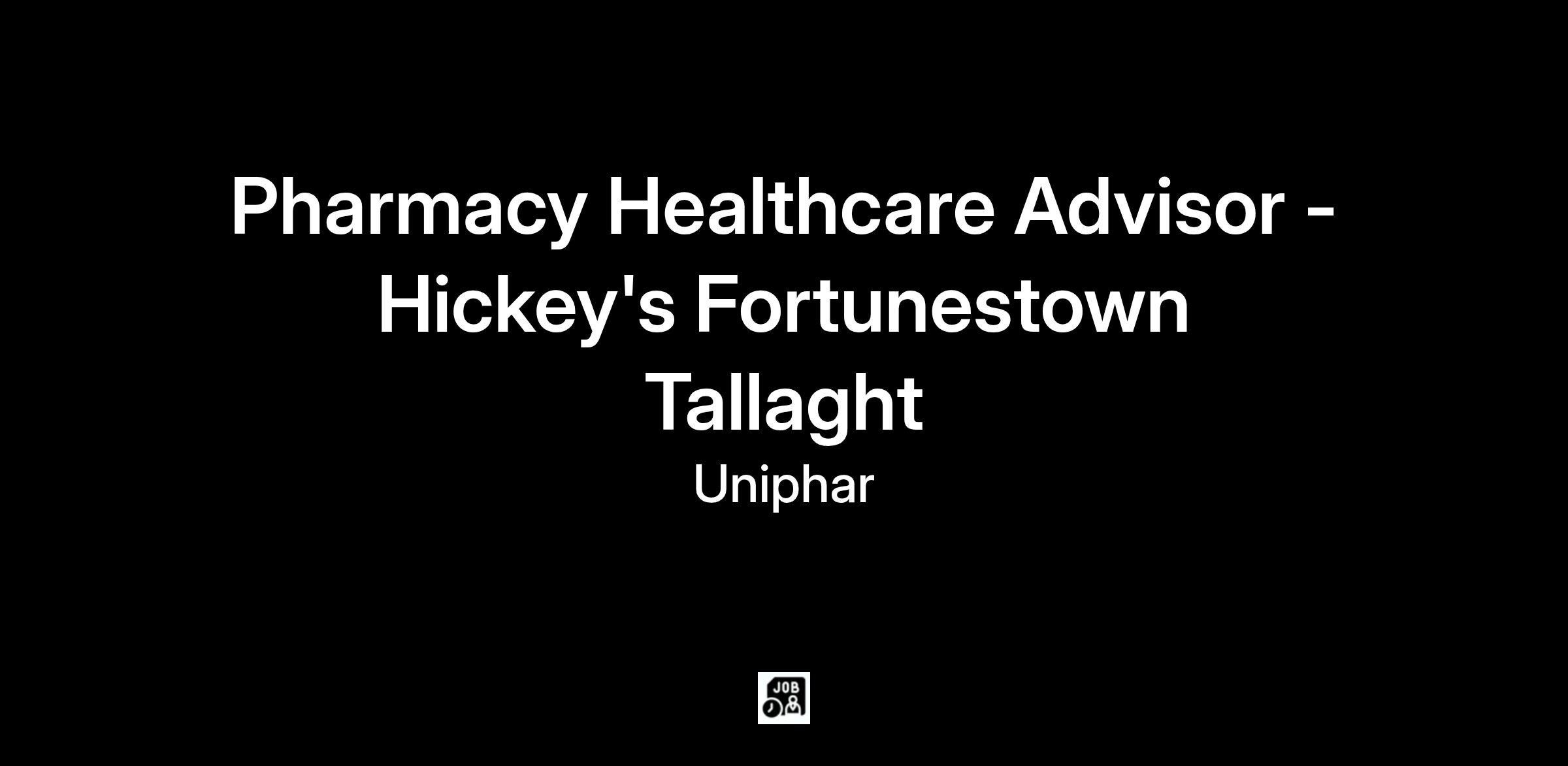 We currently have an exciting opportunity for a Pharmacy Healthcare Advisor to join the Hickey's Pharmacy team in Tallaght. This is a part time, permanent contract.