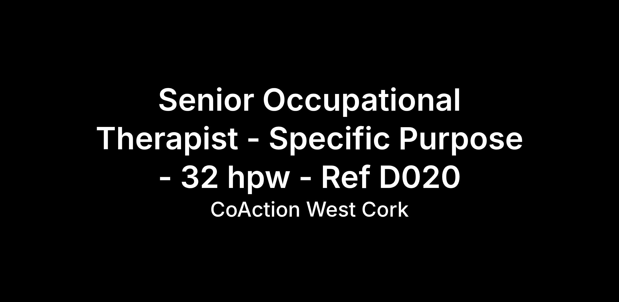 We are looking for a Senior Occupational Therapist for our West Cork Children's Disability Network Team (WCCDNT) in our West Cork Locations.