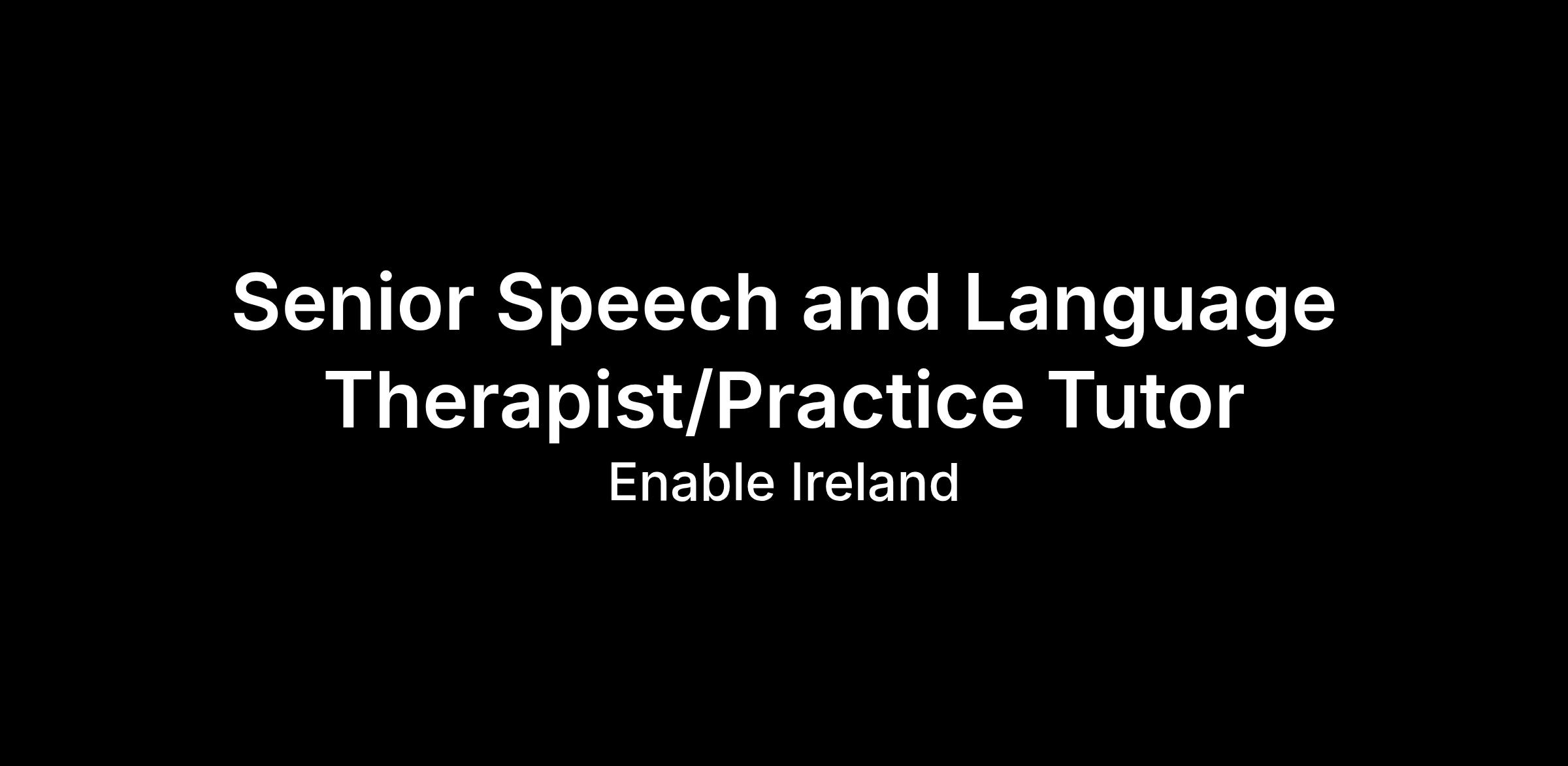 Senior Speech and Language Therapist/Practice Tutor
